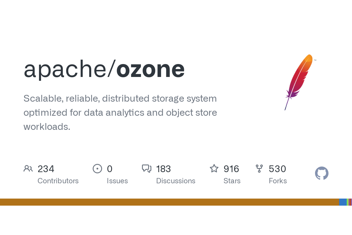 - Ozone 應該是目前唯一一個完全自由的 license(Apache License 2.0) 的分散式檔案系統, 光是這點就無敵了
